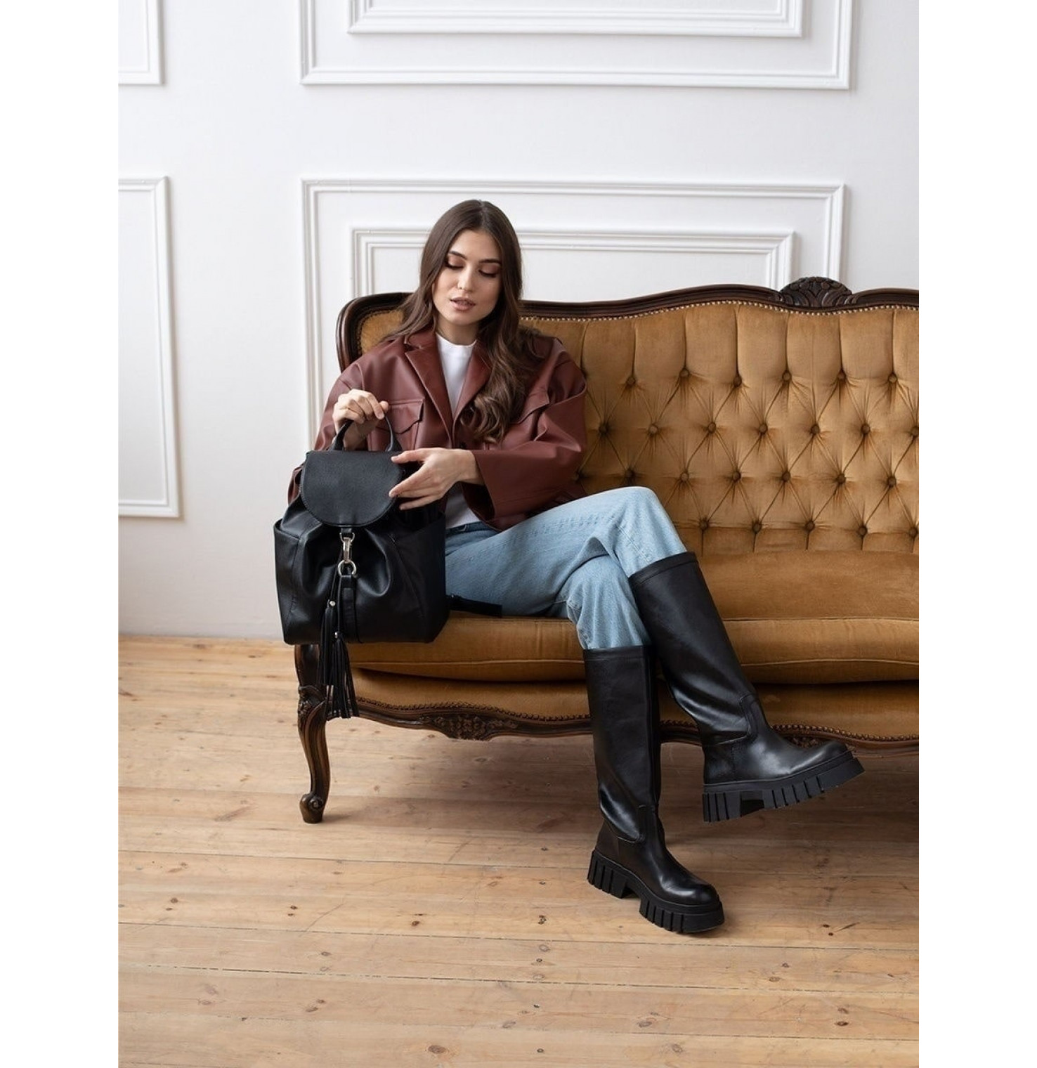 - Ручка.- 2 плечевых регулируемых ремня. - Длина брителей 77см.- Сзади наружный карман под змейкой и два кармана по бокам на магнитах.- Внутри 3 кармана: один на змейке и два открытых.- Основное отделение затягивается на шнурок и закрывается на карабин. - Рюкзак идеально сочетается с платьем, джинсами, брюками, курткой и пальто.- Сделано с душой на собственном производстве в России!