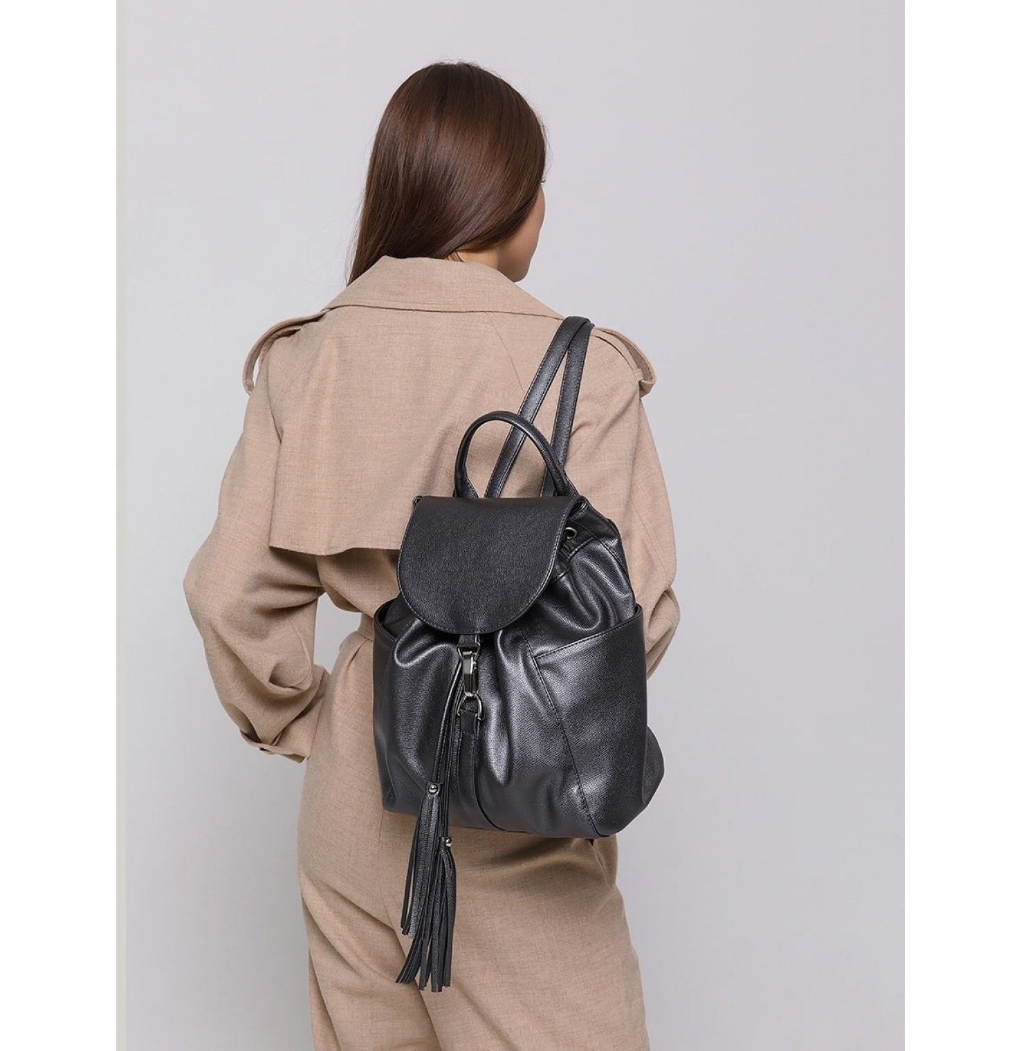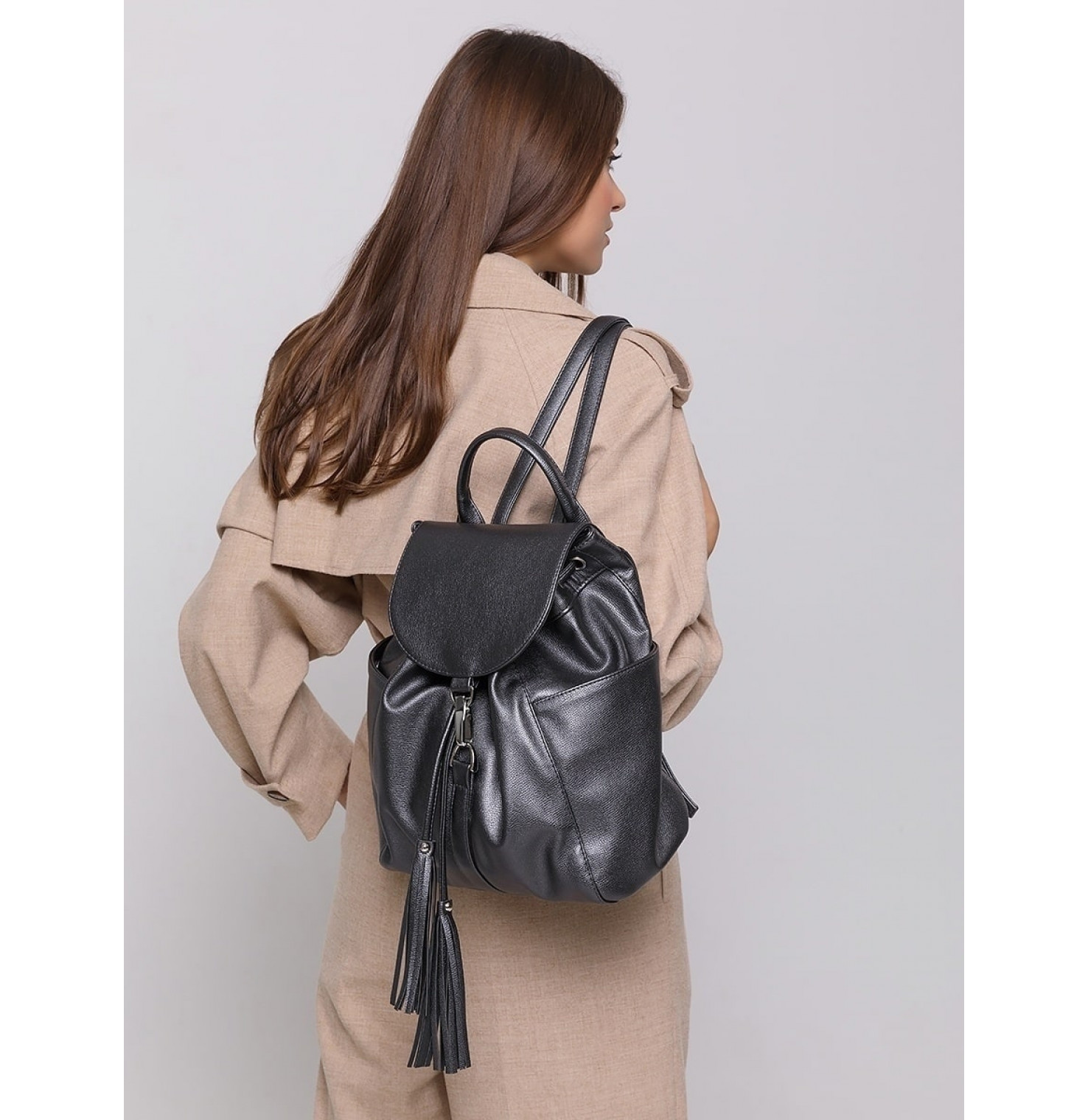 - Ручка.- 2 плечевых регулируемых ремня. - Длина брителей 77см.- Сзади наружный карман под змейкой и два кармана по бокам на магнитах.- Внутри 3 кармана: один на змейке и два открытых.- Основное отделение затягивается на шнурок и закрывается на карабин. - Рюкзак идеально сочетается с платьем, джинсами, брюками, курткой и пальто.- Сделано с душой на собственном производстве в России!