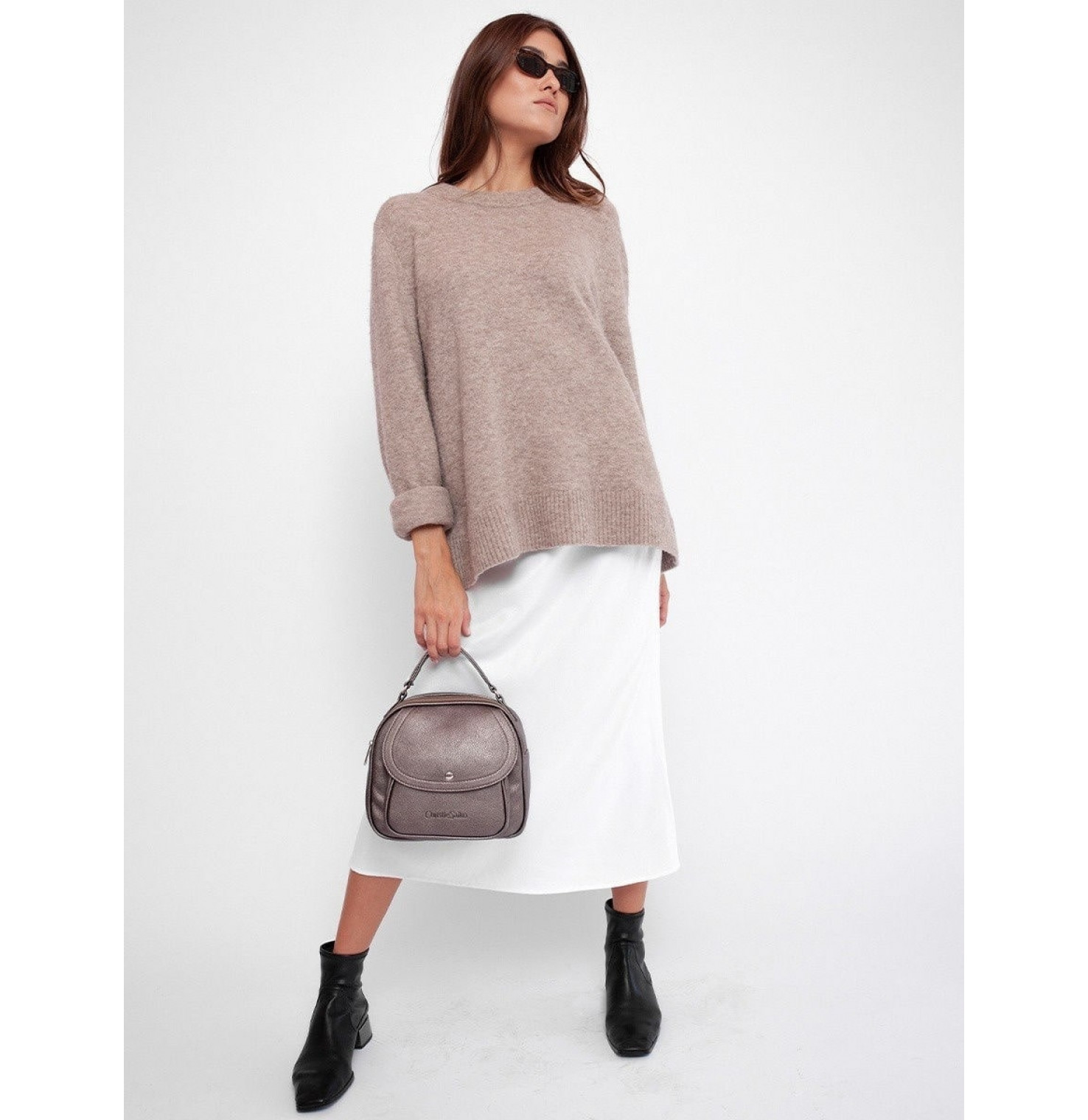 Идеально сочетается с платьем, джинсами, шортами, строгим костюмом,пальто и курткой.