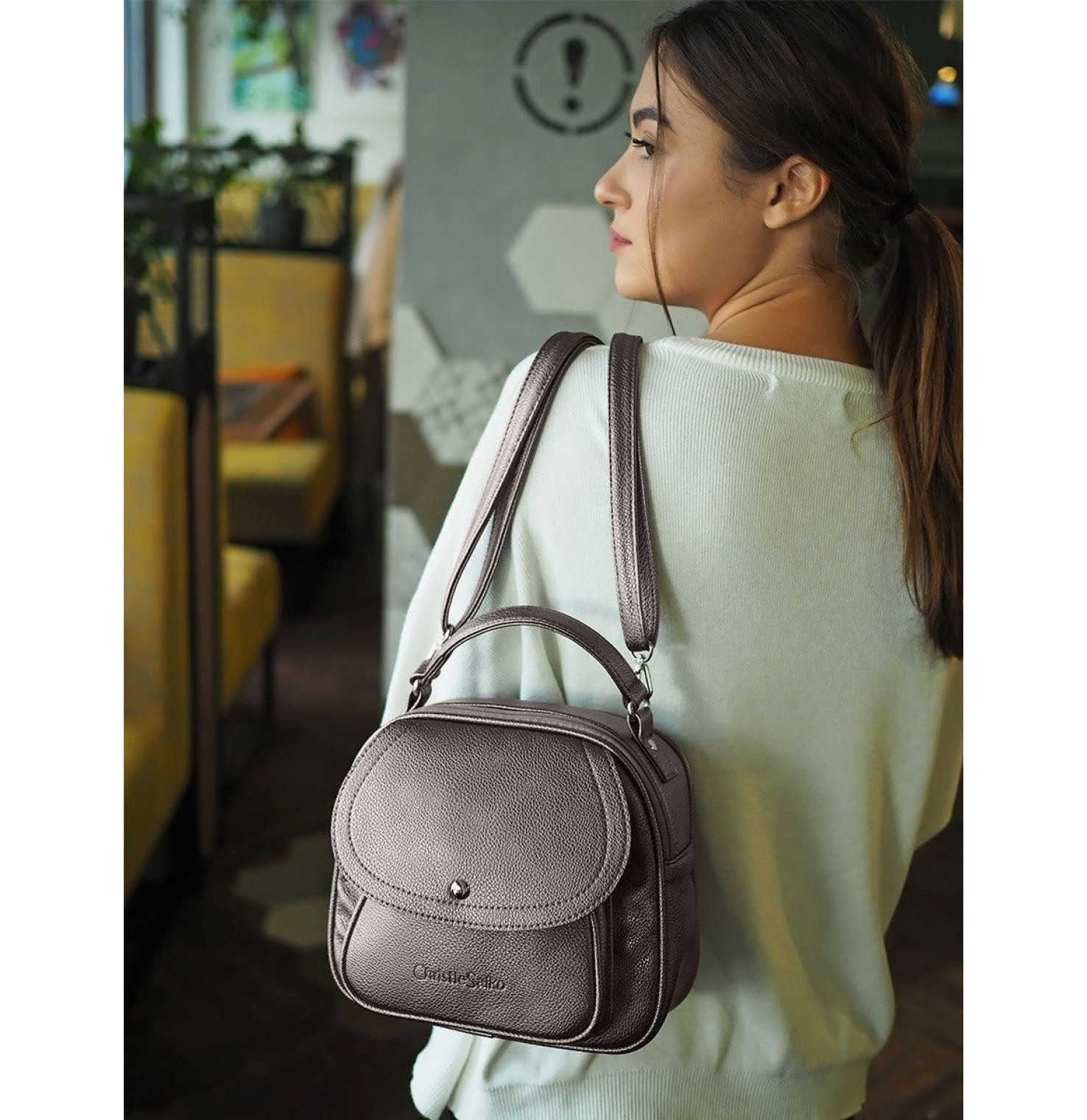 Удобная, стильная, а главное вместительная сумка - рюкзак небольшого размера.
