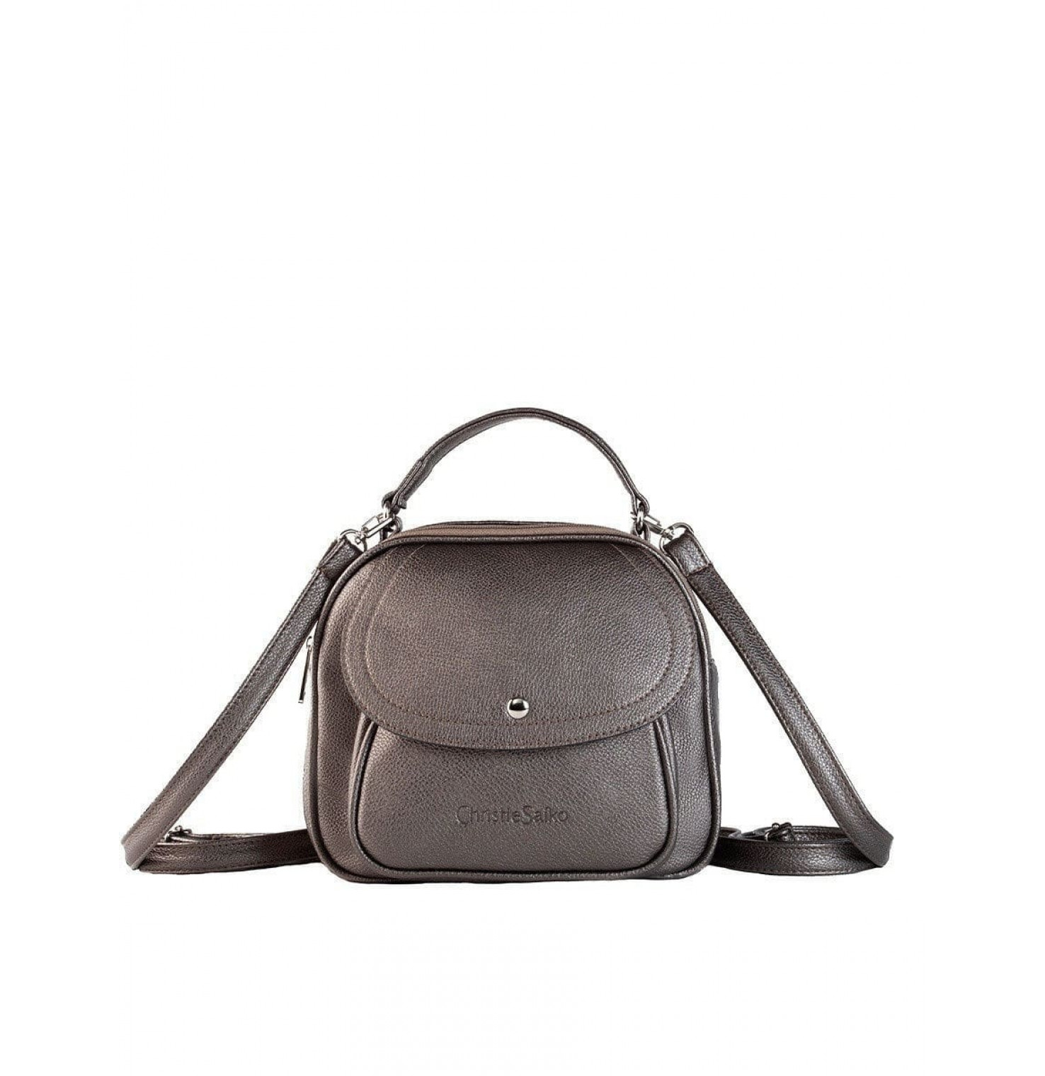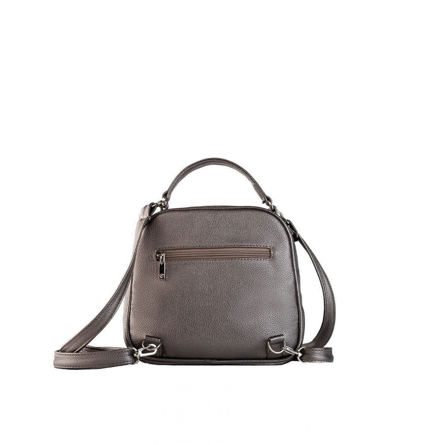 Описание: Ручка. Два плечевых регулируемых, съемных ремня. Спереди рюкзака-сумки один наружный карман на кнопке, сзади наружный карман на молнии и два кармана внутри. Основное отделение закрывается с помощью молнии. На молнии есть металлический бегунок.