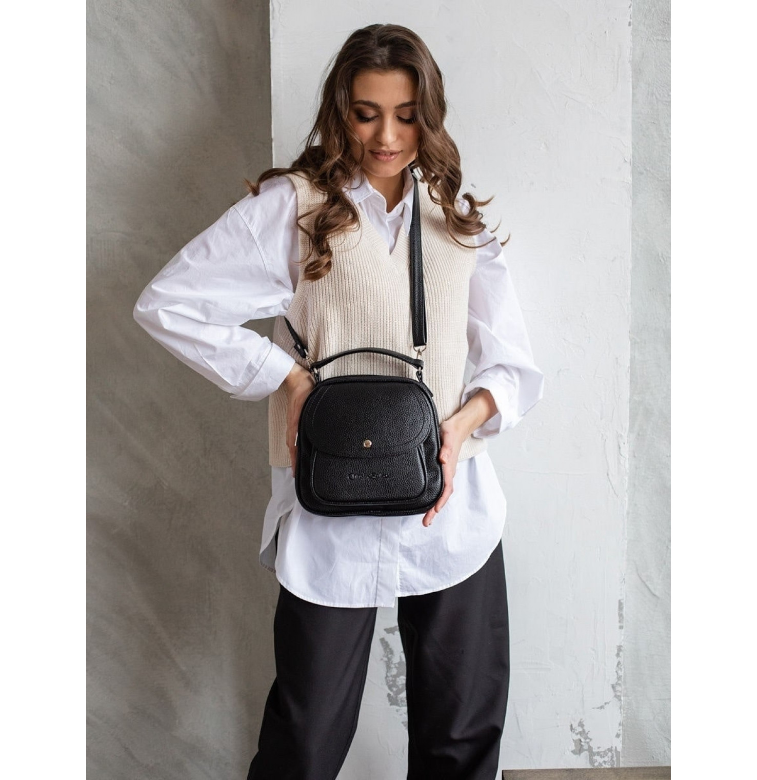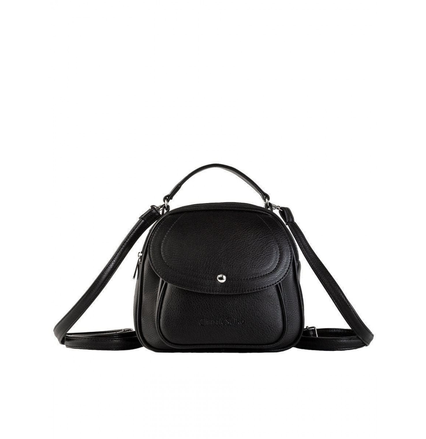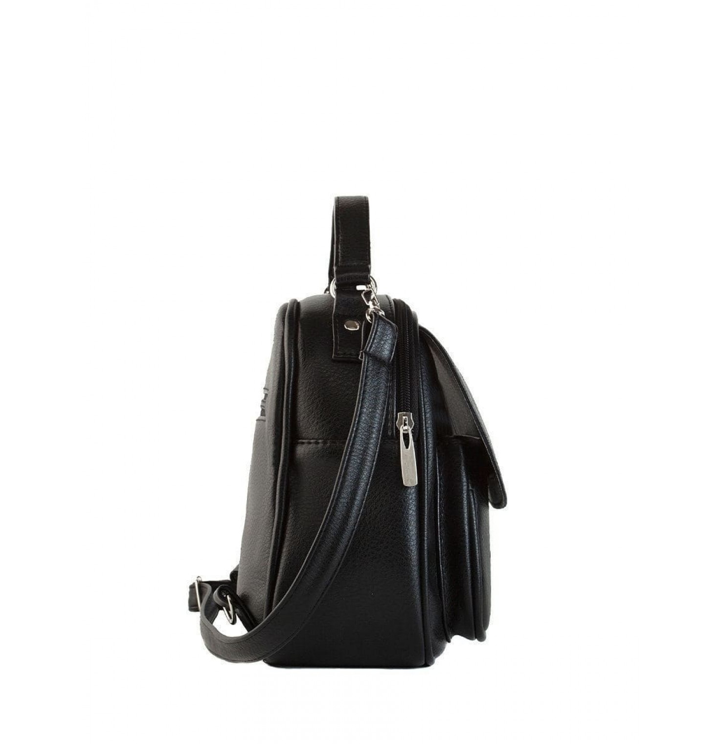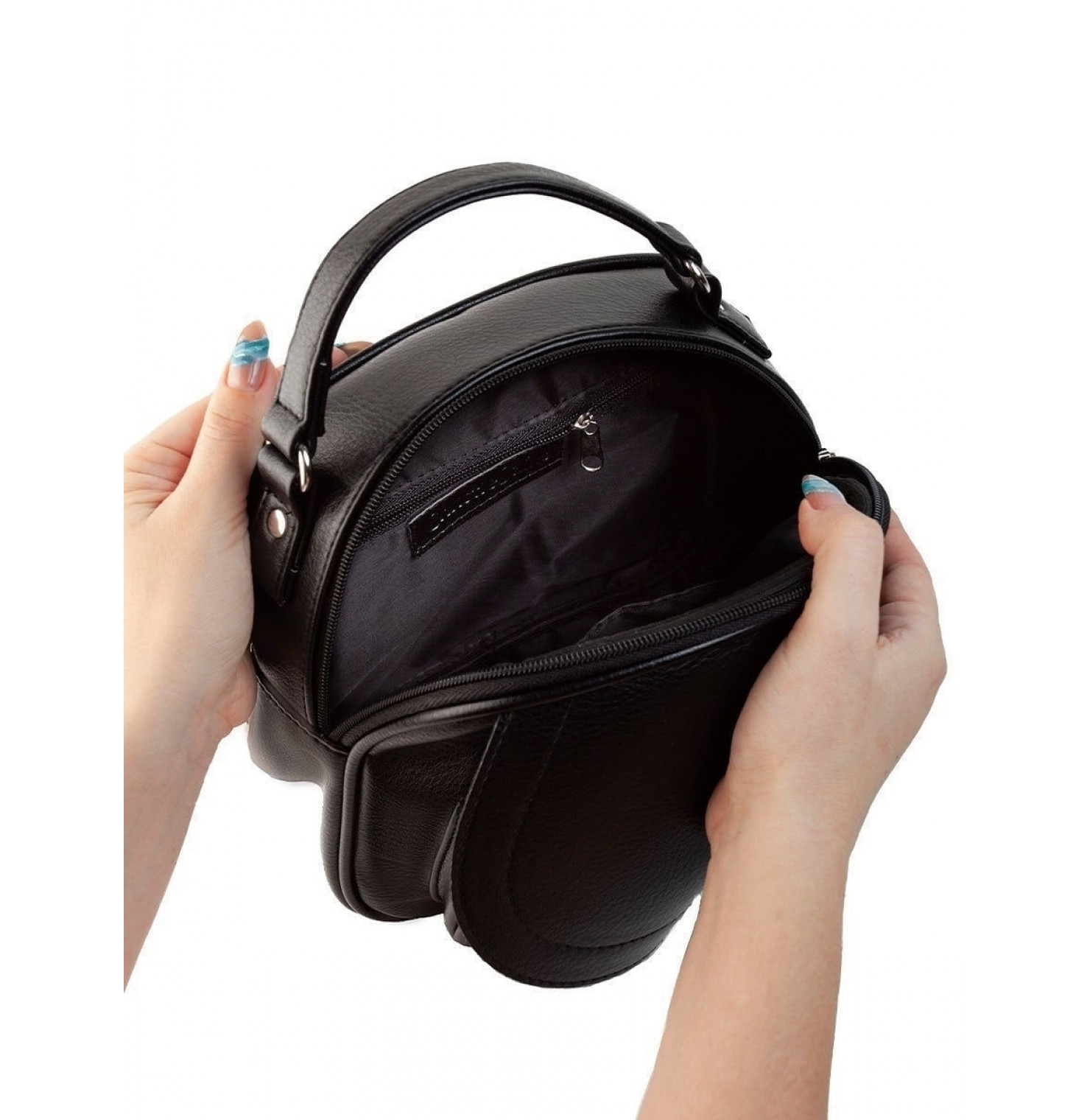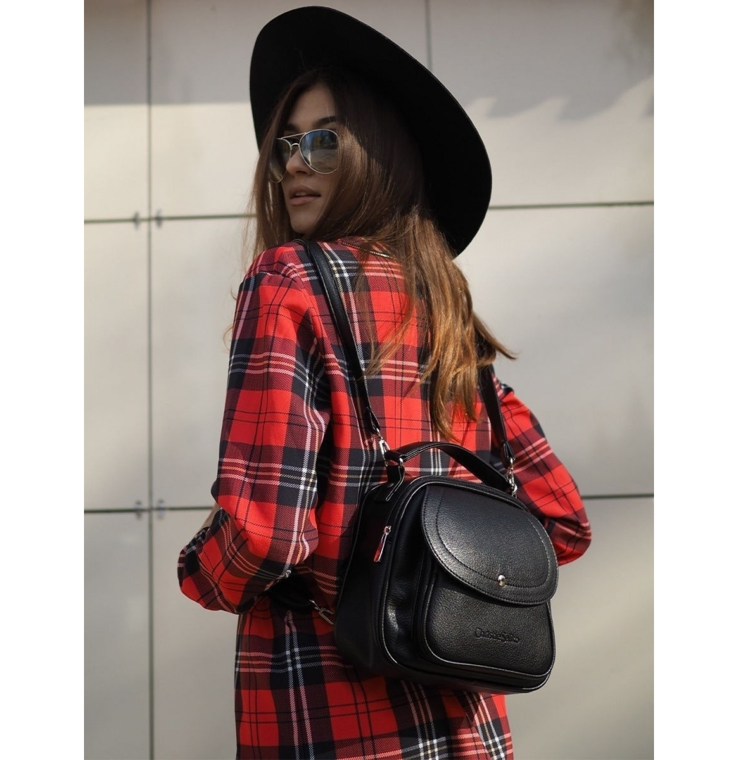 Описание: Ручка. Два плечевых регулируемых, съемных ремня. Спереди рюкзака-сумки один наружный карман на кнопке, сзади наружный карман на молнии и два кармана внутри. Основное отделение закрывается с помощью молнии. На молнии есть металлический бегунок.