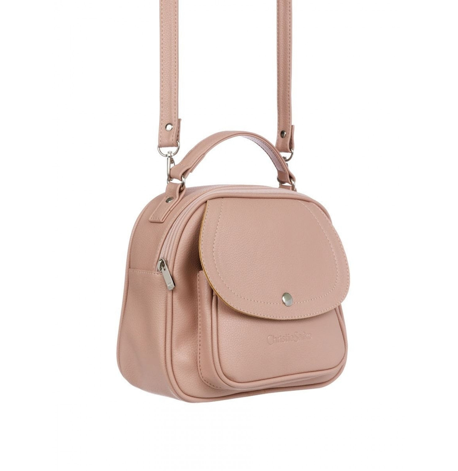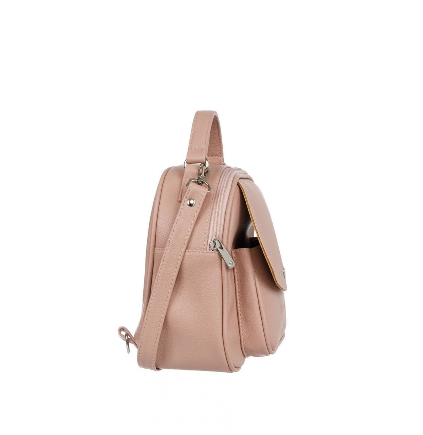 Описание: Ручка. Два плечевых регулируемых, съемных ремня. Спереди рюкзака-сумки один наружный карман на кнопке, сзади наружный карман на молнии и два кармана внутри. Основное отделение закрывается с помощью молнии. На молнии есть металлический бегунок.