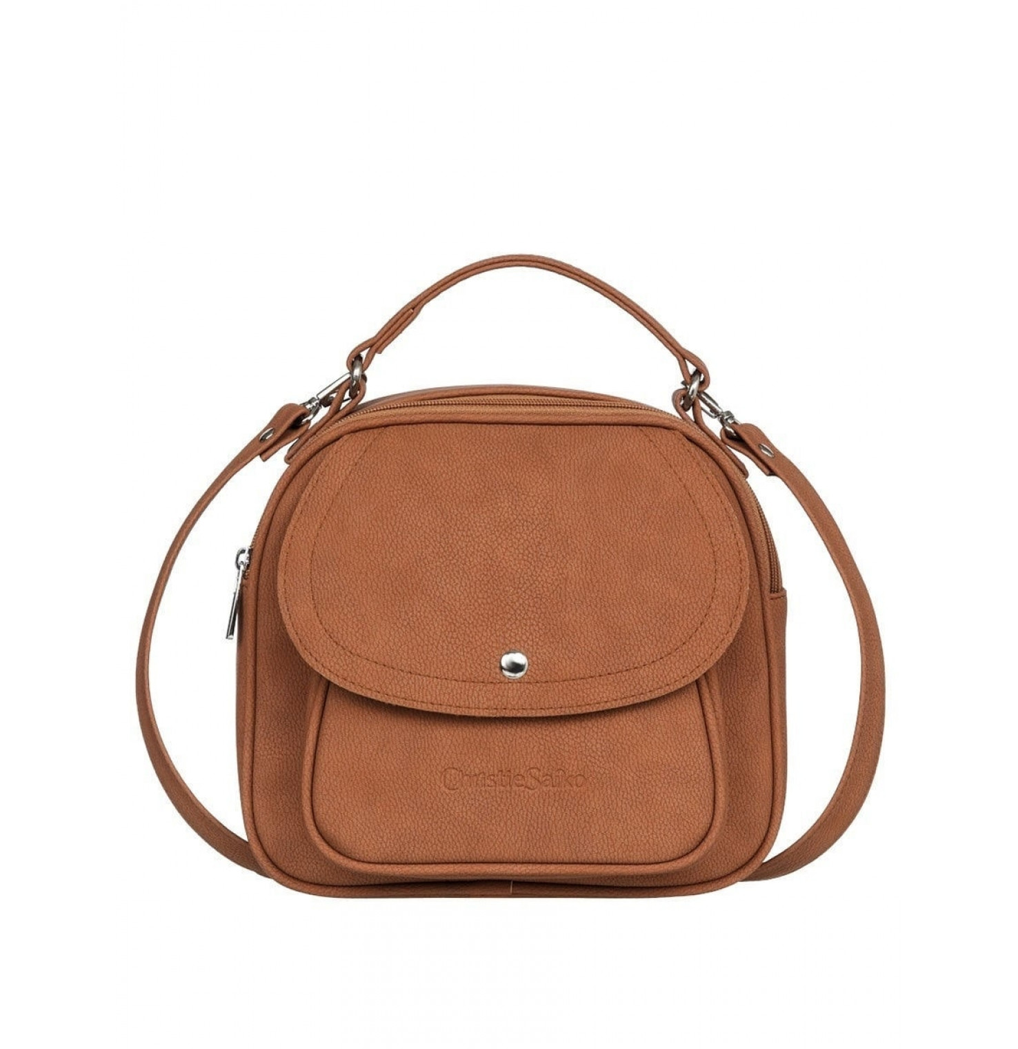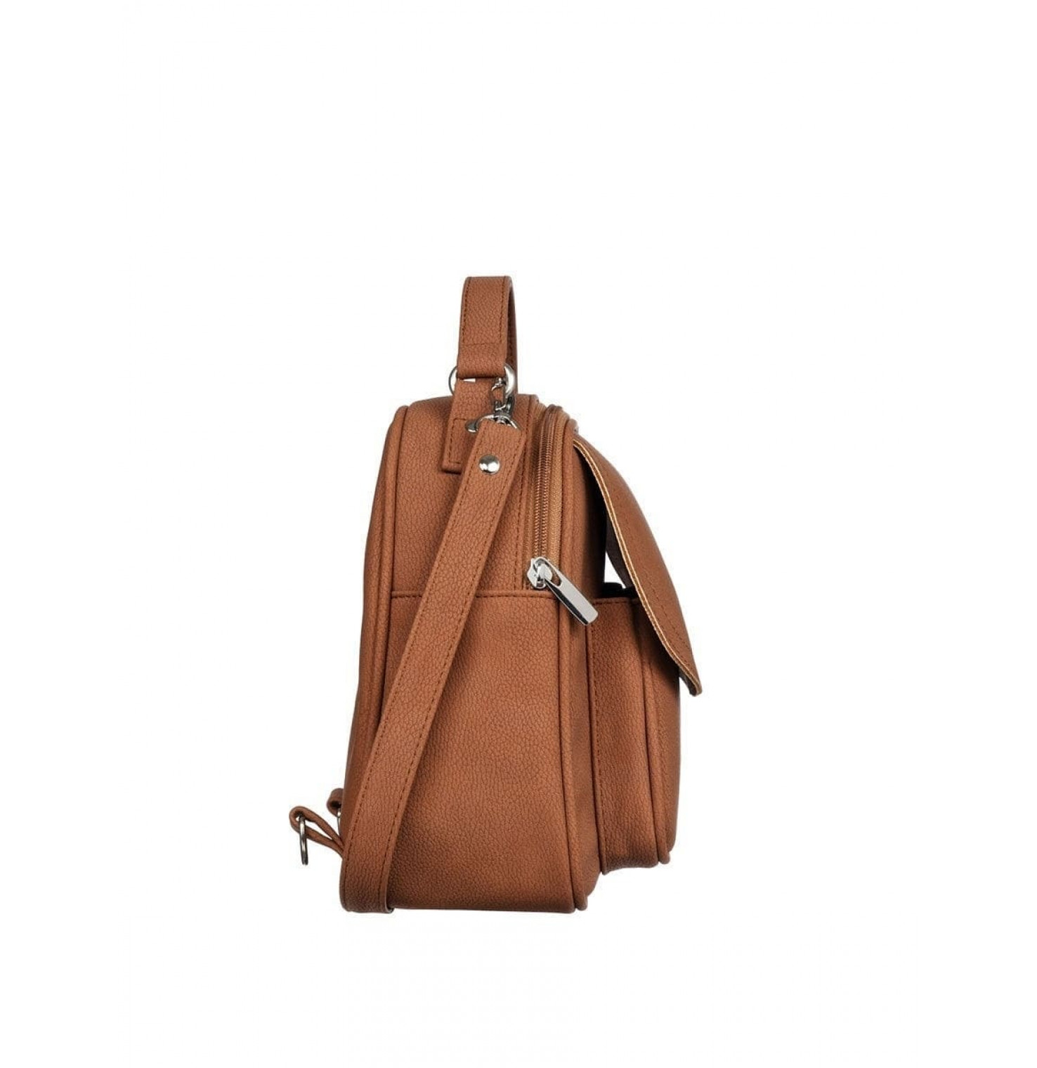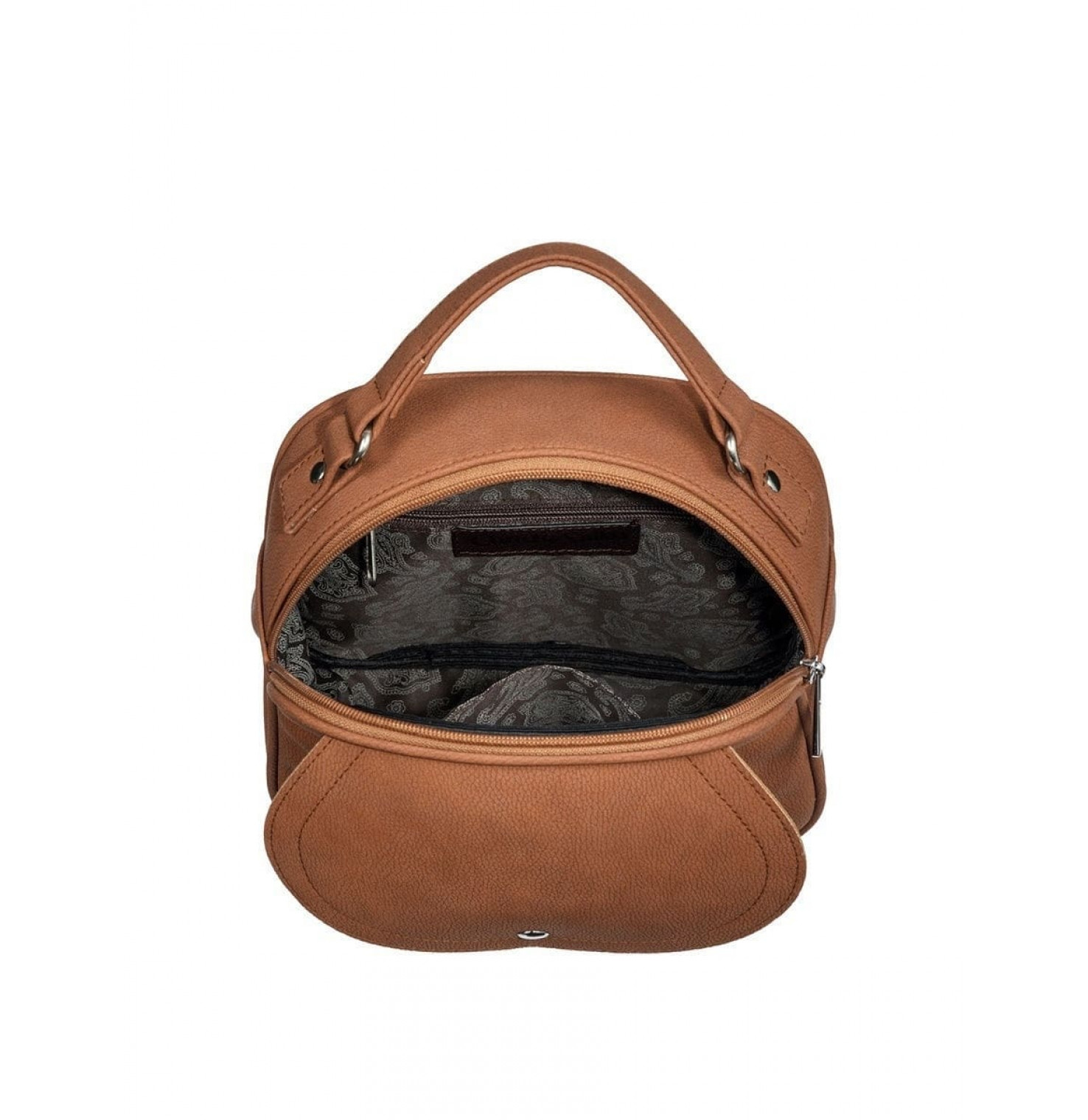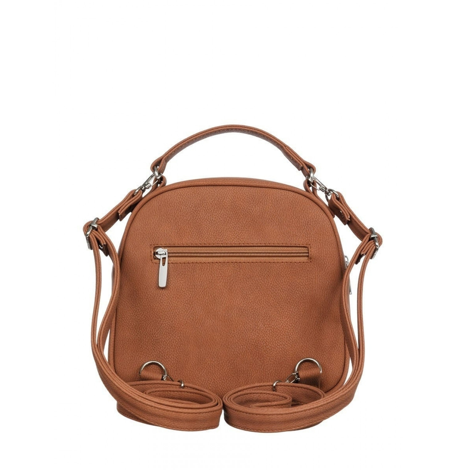 Описание: Ручка. Два плечевых регулируемых, съемных ремня. Спереди рюкзака-сумки один наружный карман на кнопке, сзади наружный карман на молнии и два кармана внутри. Основное отделение закрывается с помощью молнии. На молнии есть металлический бегунок.