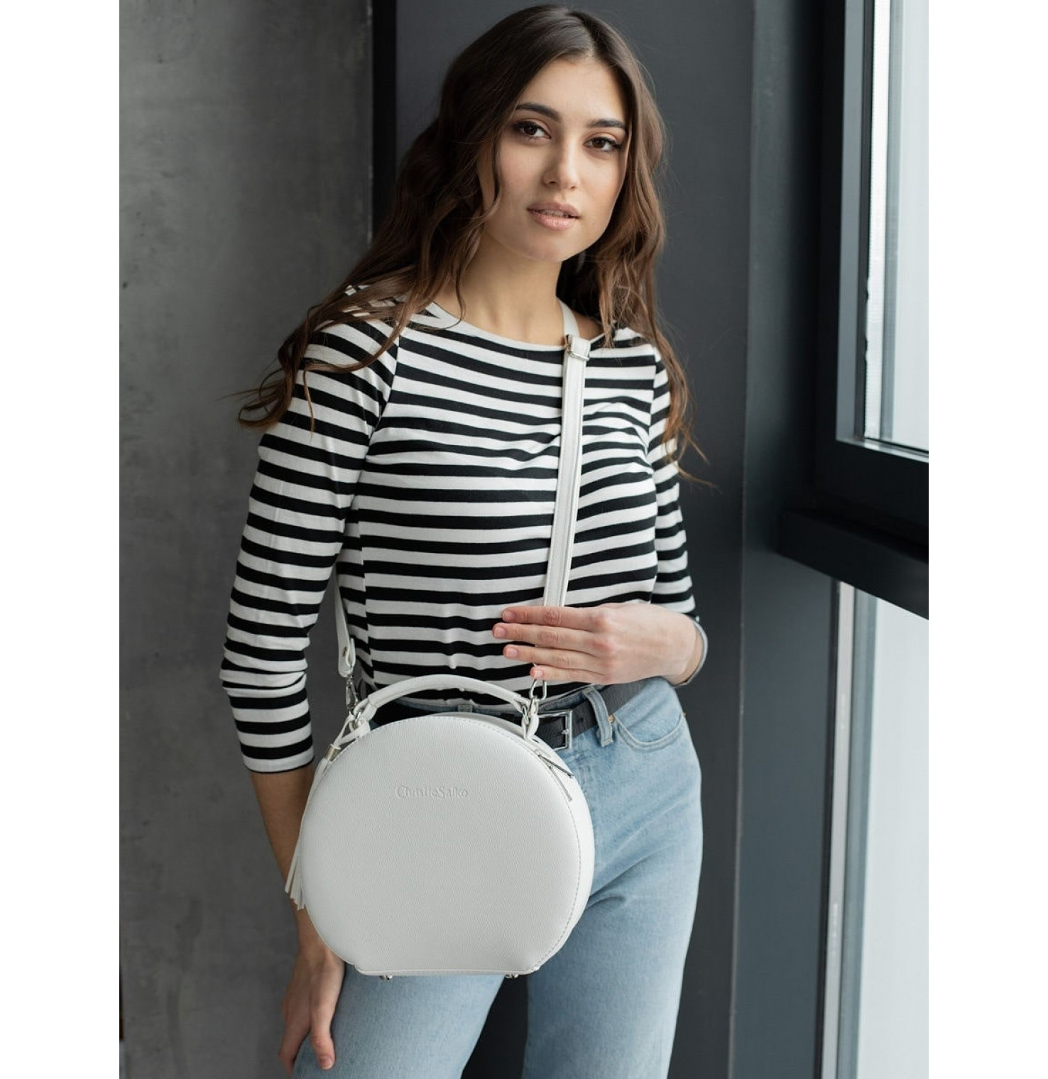 Эта круглая сумка проживёт с вами все - деловое платье и каблуки, джинсы, торговый центр и кофе с подружкой, родительское собрание, тусовку, свидание, длинную поездку в удобной обуви.