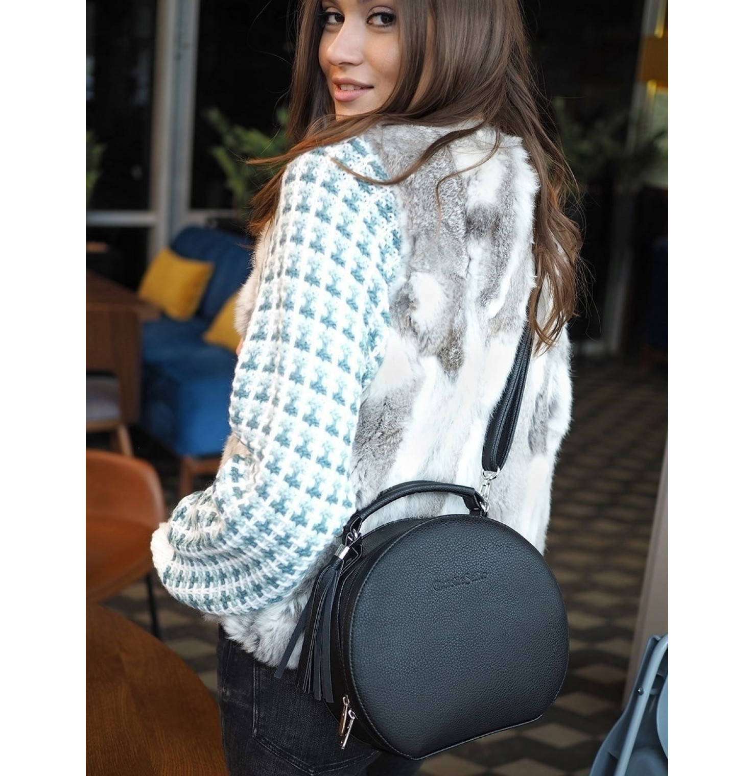 Эта круглая сумка проживёт с вами все - деловое платье и каблуки, джинсы, торговый центр и кофе с подружкой, родительское собрание, тусовку, свидание, длинную поездку в удобной обуви.