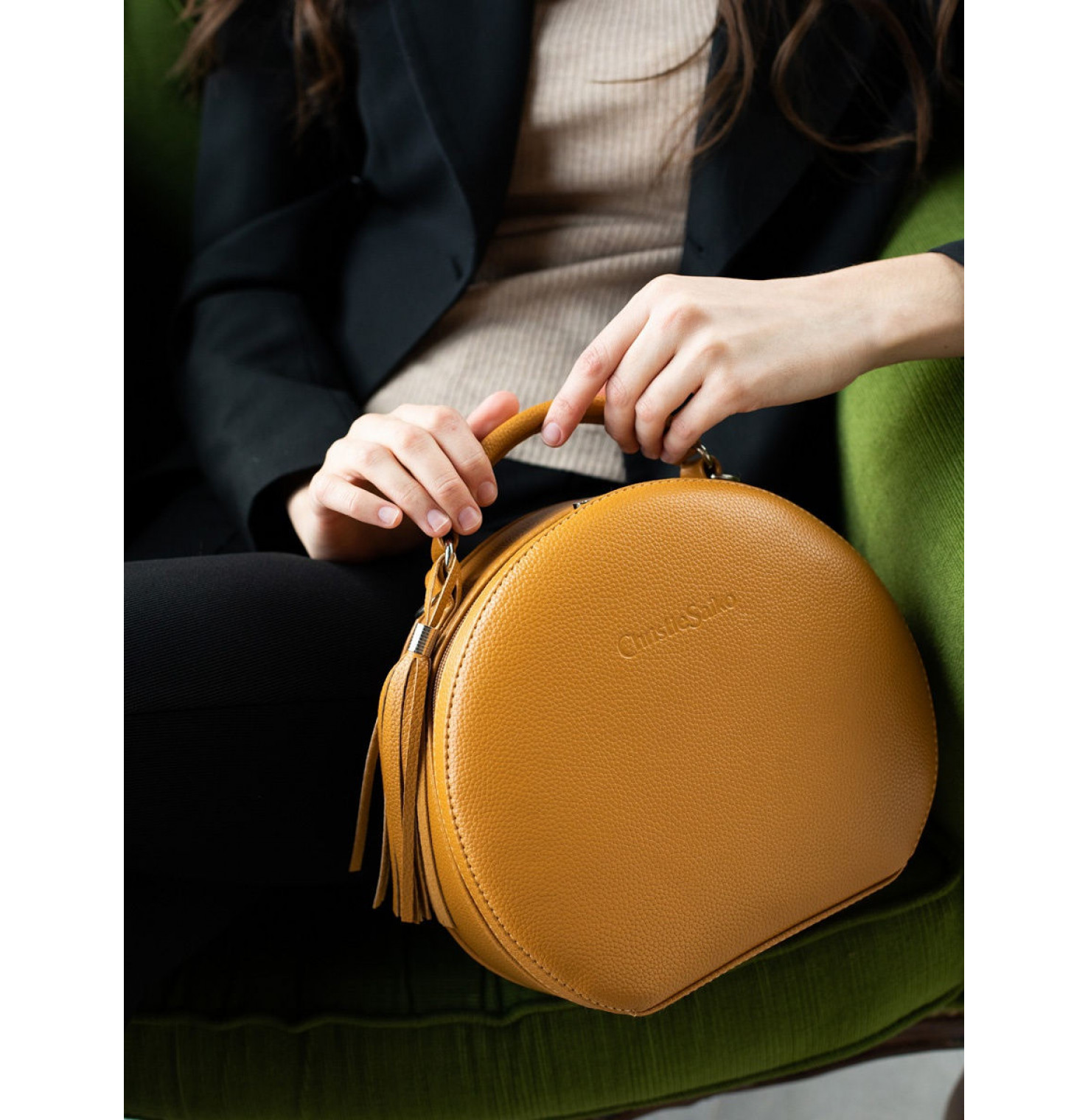 Эта круглая сумка проживёт с вами все - деловое платье и каблуки, джинсы, торговый центр и кофе с подружкой, родительское собрание, тусовку, свидание, длинную поездку в удобной обуви.