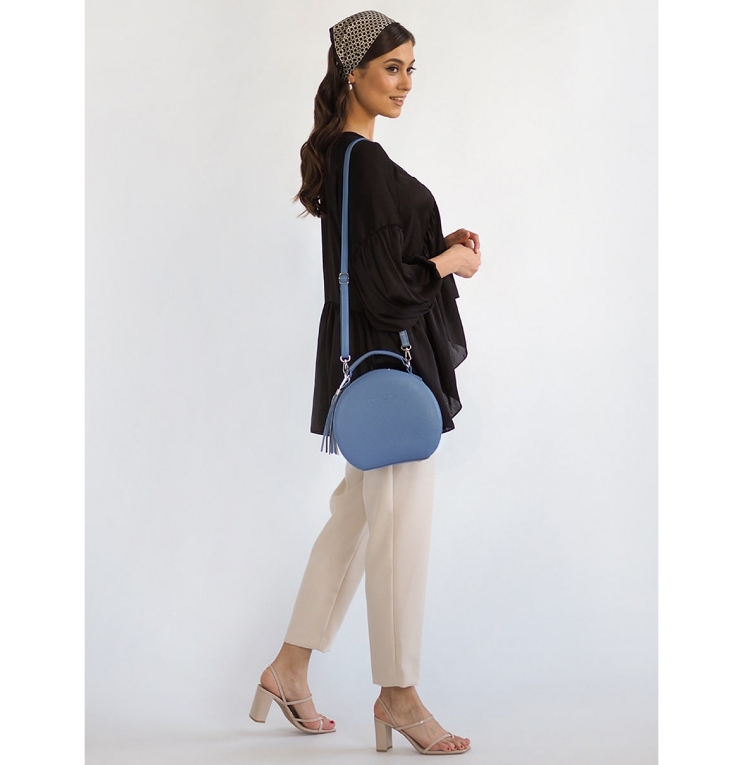 Эта круглая сумка проживёт с вами все - деловое платье и каблуки, джинсы, торговый центр и кофе с подружкой, родительское собрание, тусовку, свидание, длинную поездку в удобной обуви.