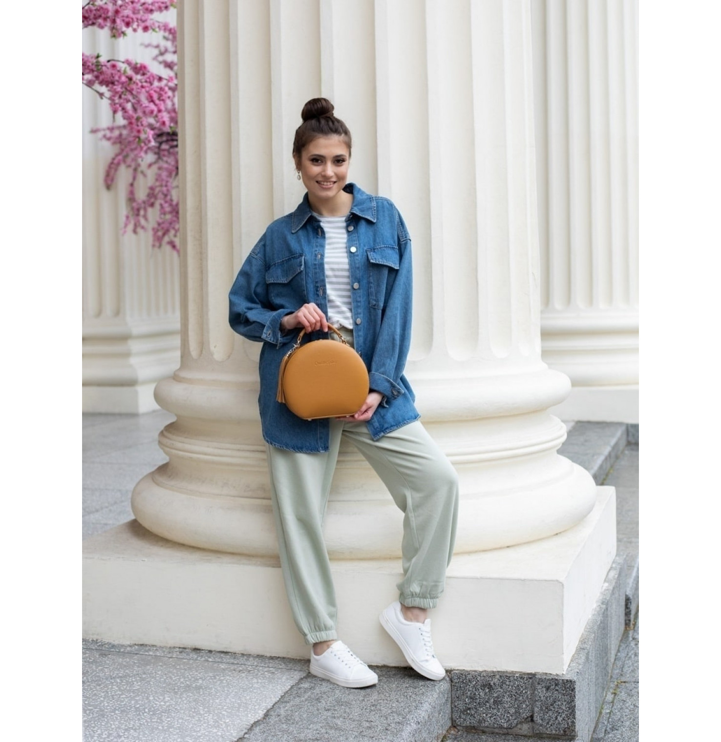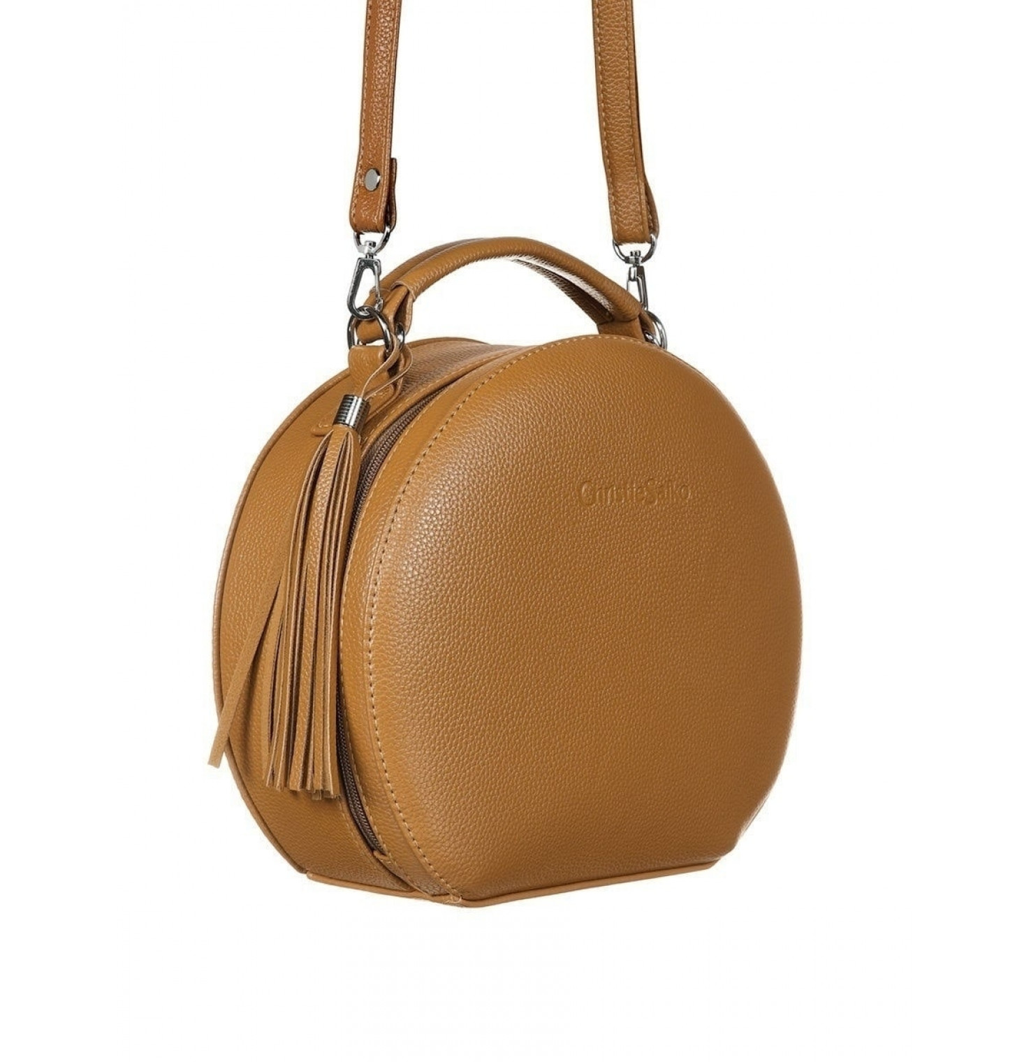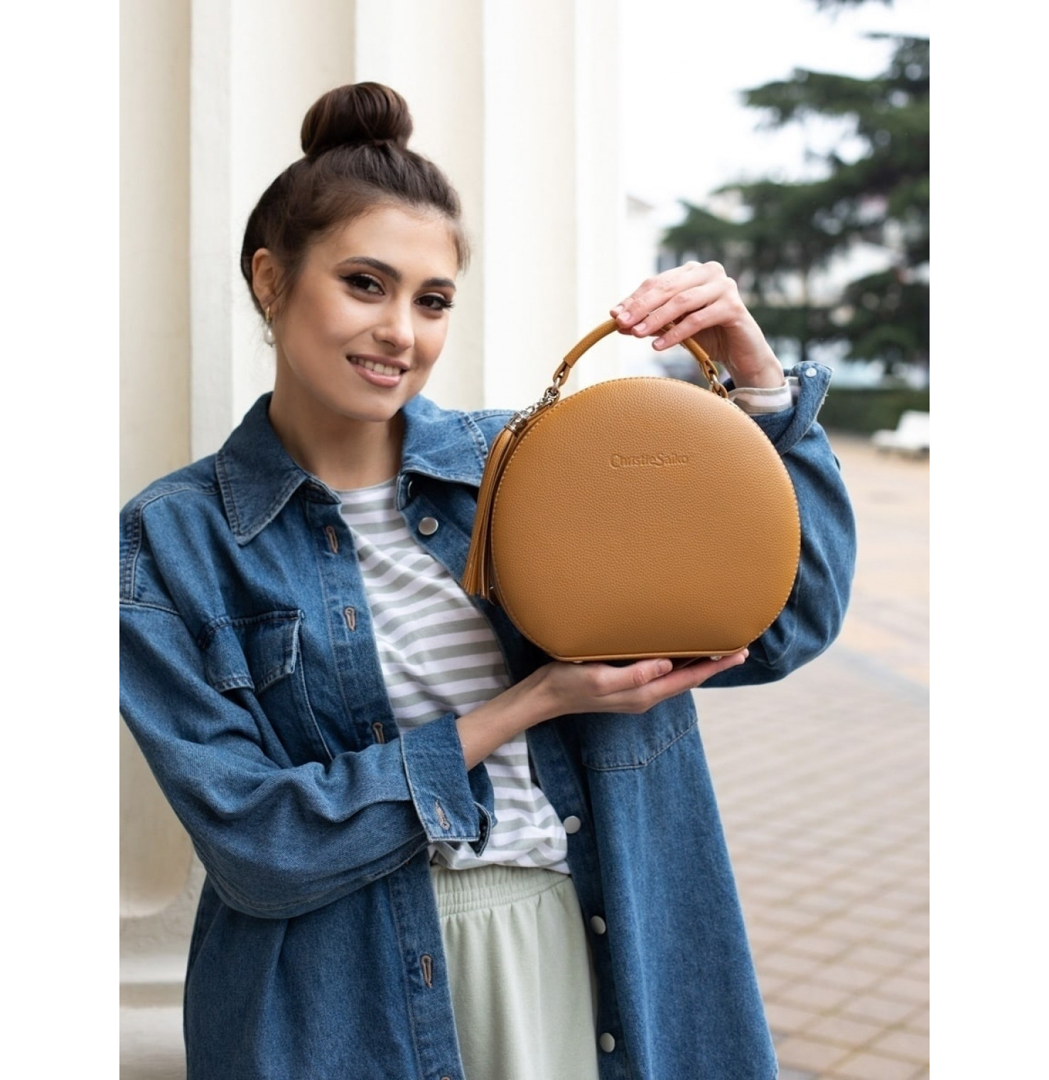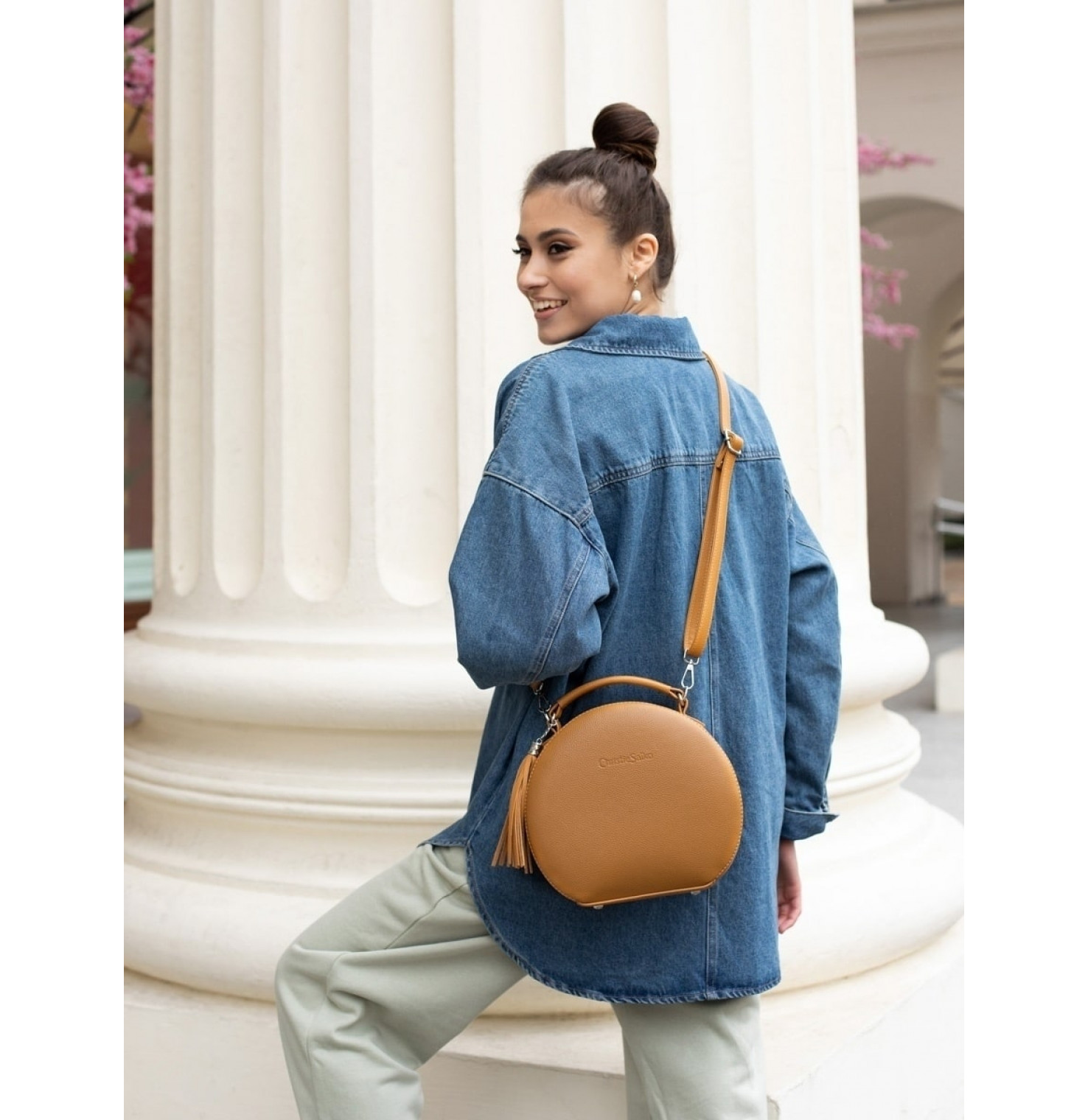 Эта круглая сумка проживёт с вами все - деловое платье и каблуки, джинсы, торговый центр и кофе с подружкой, родительское собрание, тусовку, свидание, длинную поездку в удобной обуви.