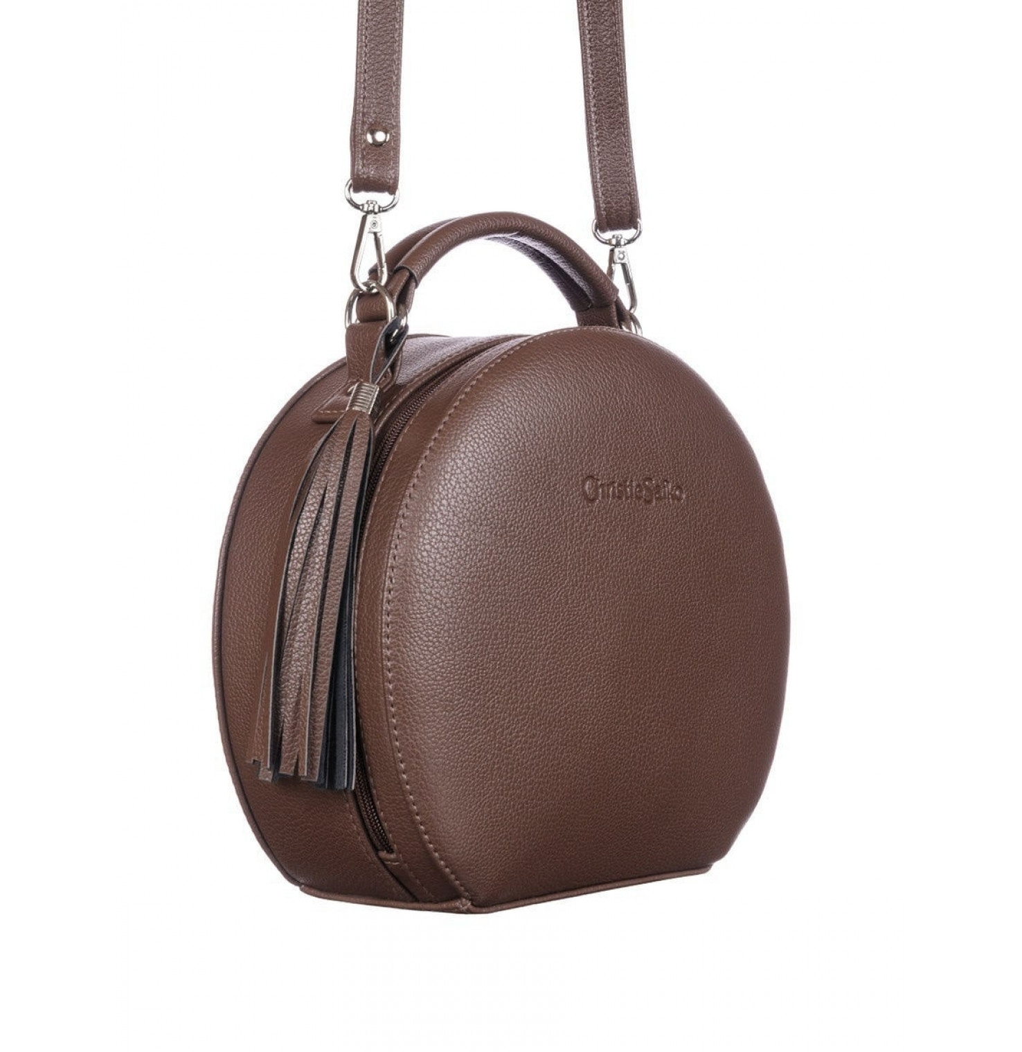 Эта круглая сумка проживёт с вами все - деловое платье и каблуки, джинсы, торговый центр и кофе с подружкой, родительское собрание, тусовку, свидание, длинную поездку в удобной обуви.