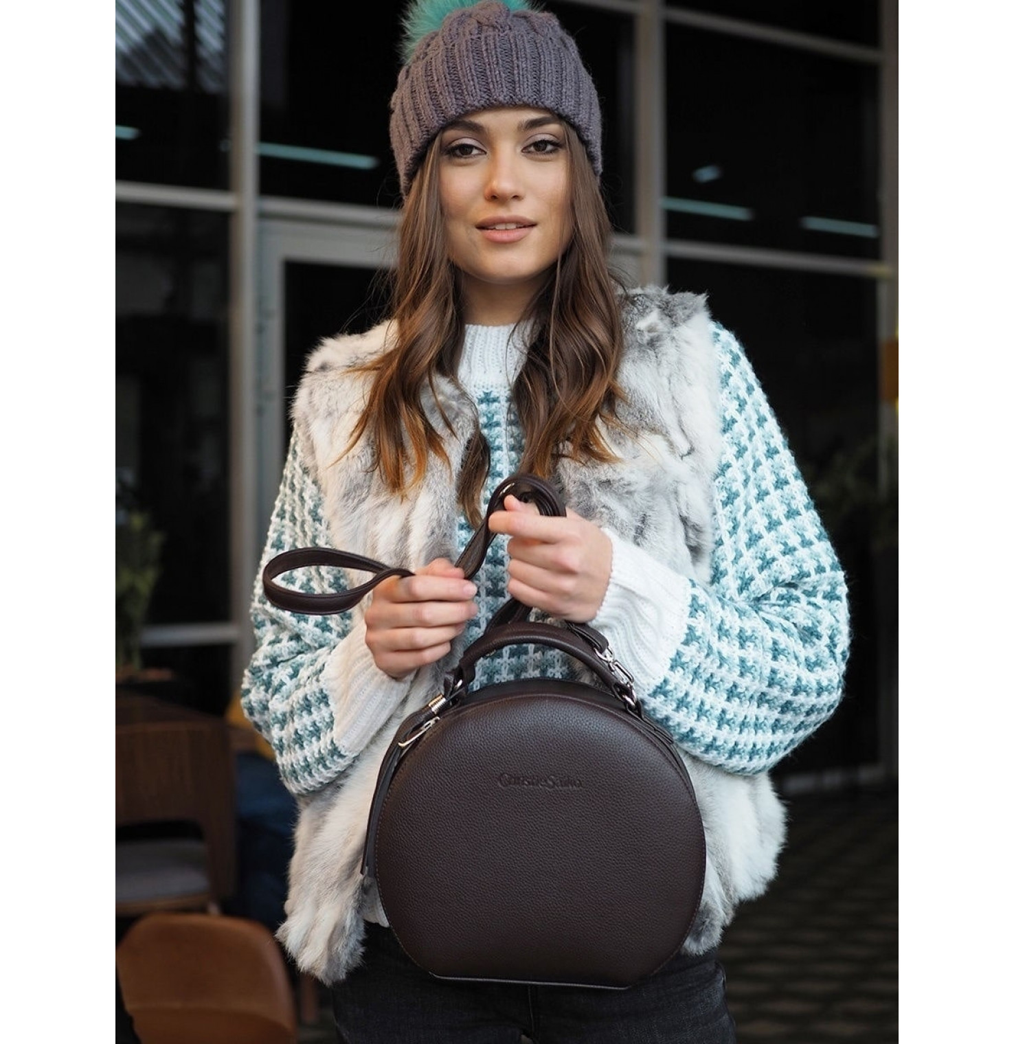 Эта круглая сумка проживёт с вами все - деловое платье и каблуки, джинсы, торговый центр и кофе с подружкой, родительское собрание, тусовку, свидание, длинную поездку в удобной обуви.